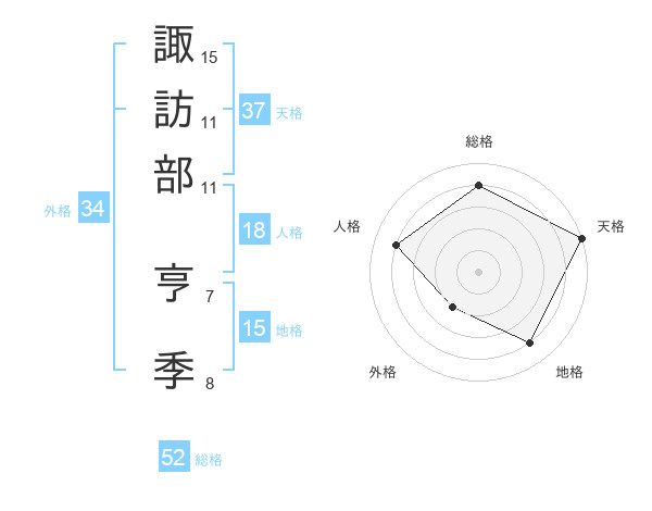 諏訪部 亨季さんの総格は52画の4点!