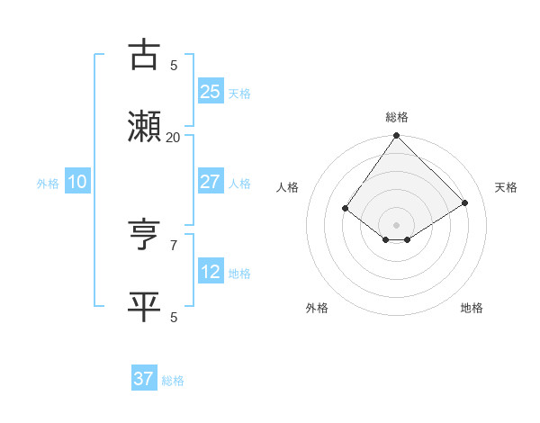 古瀬 亨平さんの総格は37画の5点!