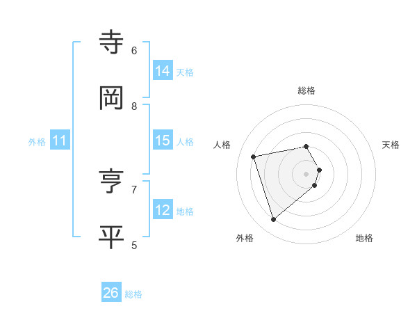 寺岡 亨平さんを姓名の画数から五運を鑑定