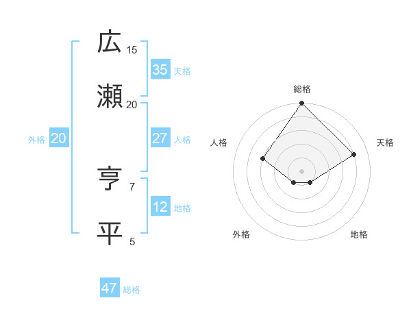 広瀬 亨平さんを姓名の画数から五運を鑑定