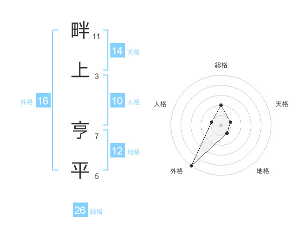 畔上 亨平さんの総格は26画の2点!