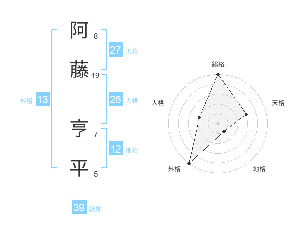 阿藤 亨平さんを姓名の画数から五運を鑑定