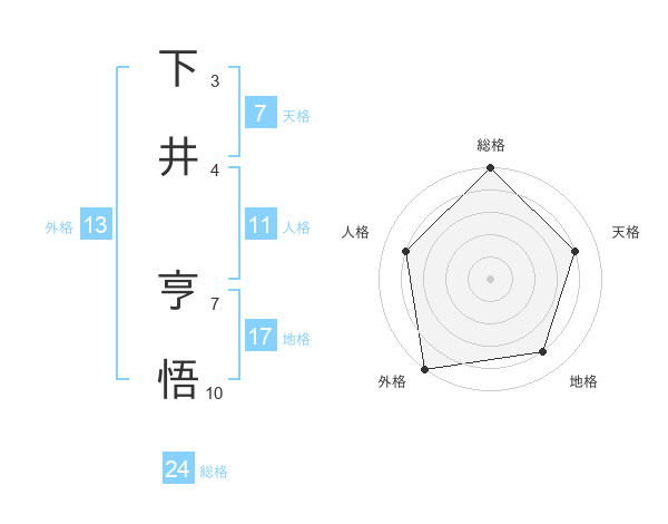 下井 亨悟さんの外格は13画の5点!