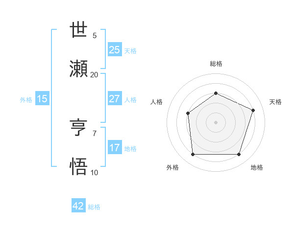 世瀬 亨悟さんの総格は42画の3点!
