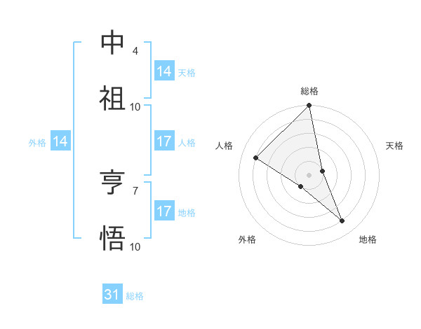 中祖 亨悟さんを姓名の画数から五運を鑑定