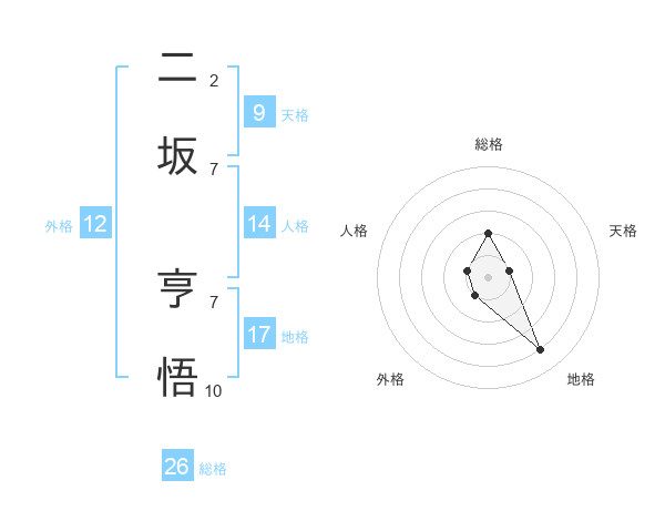 二坂 亨悟さんの総格は26画の2点!