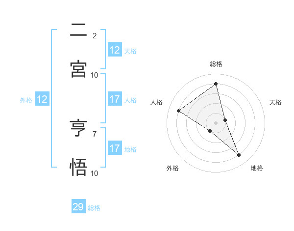 二宮 亨悟さんを姓名の画数から五運を鑑定