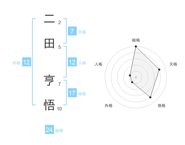 二田 亨悟さんの総格は24画の5点!