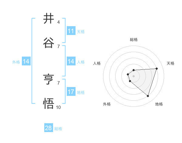 井谷 亨悟さんの天格は11画の4点!