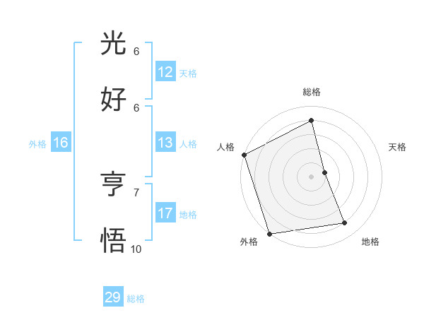 光好 亨悟さんを姓名の画数から五運を鑑定
