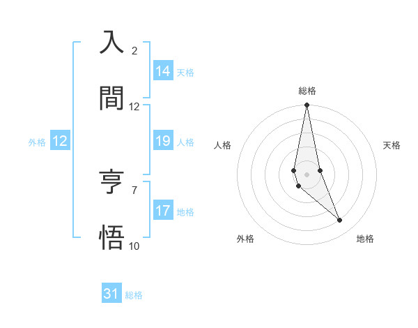 入間 亨悟さんの総格は31画の5点!