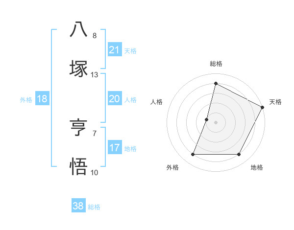 八塚 亨悟さんの総格は38画の4点!