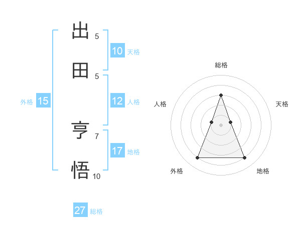 出田 亨悟さんを姓名の画数から五運を鑑定