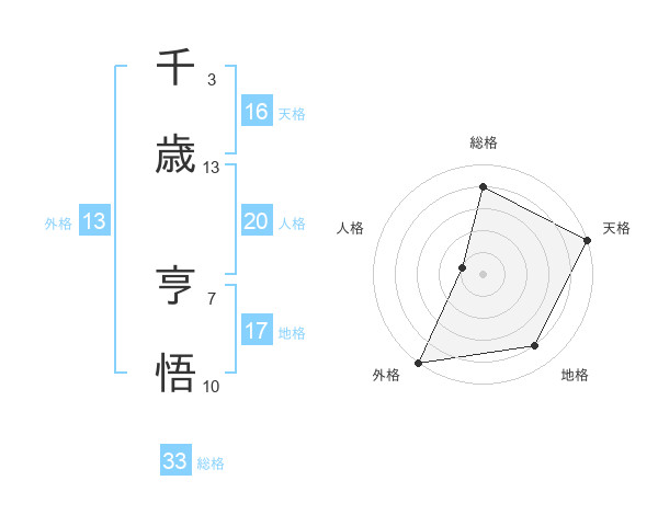 千歳 亨悟さんを姓名の画数から五運を鑑定