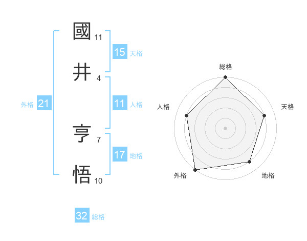 國井 亨悟さんの総格は32画の5点!