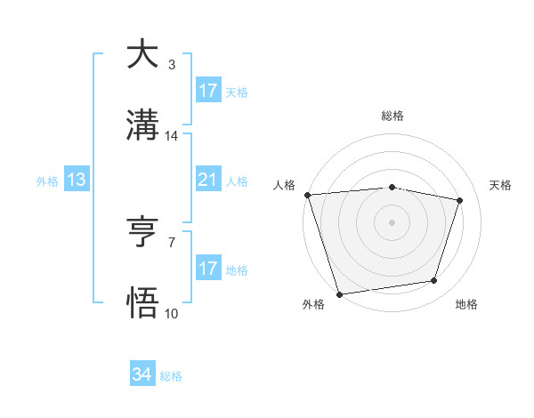 大溝 亨悟さんを姓名の画数から五運を鑑定