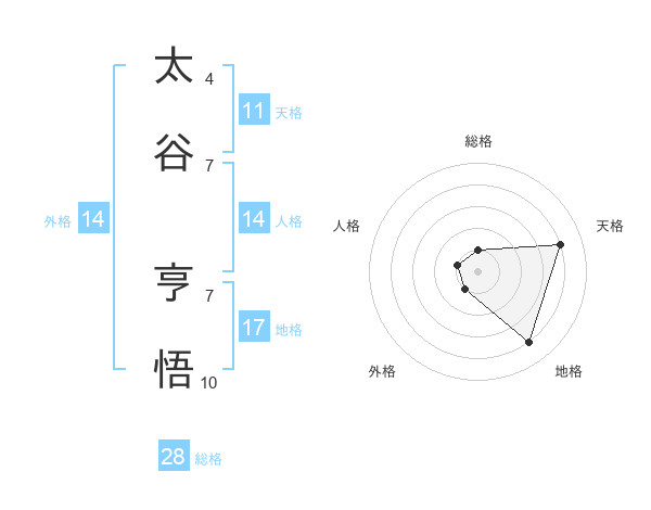 太谷 亨悟さんの総格は28画の1点!