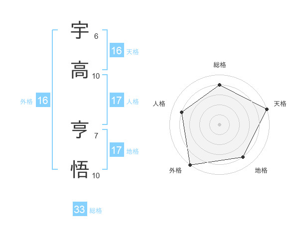 宇高 亨悟さんの外格は16画の5点!