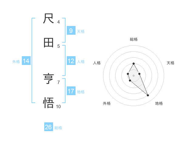 尺田 亨悟さんの総格は26画の2点!