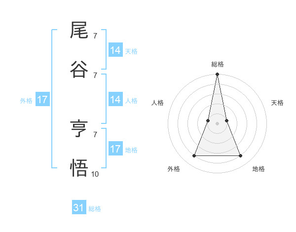 尾谷 亨悟さんの総格は31画の5点!