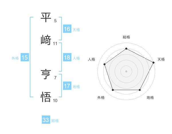 平﨑 亨悟さんの地格は17画の4点!
