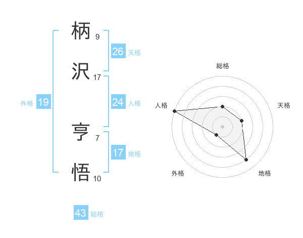 柄沢 亨悟さんを姓名の画数から五運を鑑定