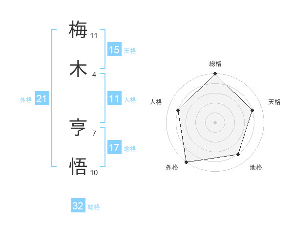 梅木 亨悟さんの総格は32画の5点!