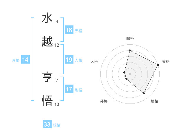 水越 亨悟さんを姓名の画数から五運を鑑定