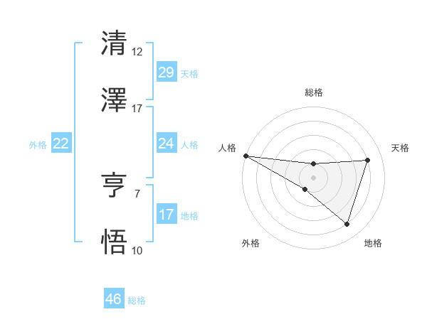 清澤 亨悟さんの天格は29画の4点!