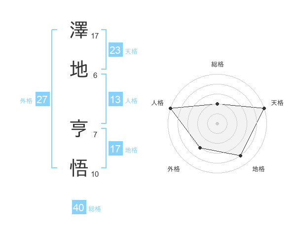 澤地 亨悟さんを姓名の画数から五運を鑑定