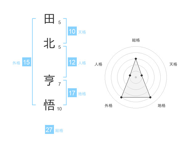 田北 亨悟さんの総格は27画の3点!
