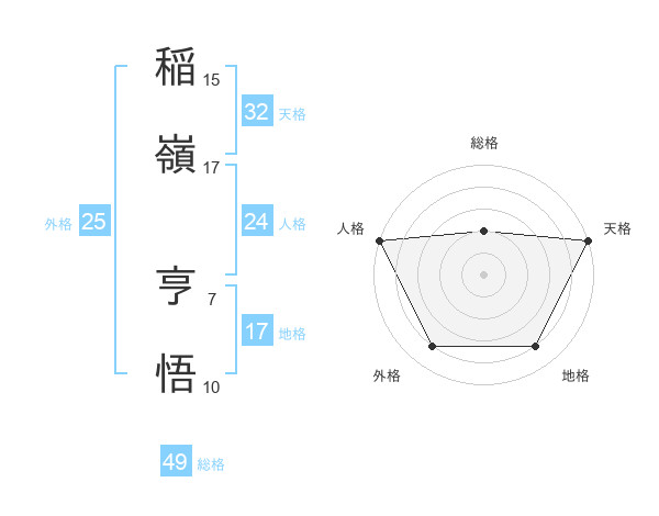 稲嶺 亨悟さんの地格は17画の4点!
