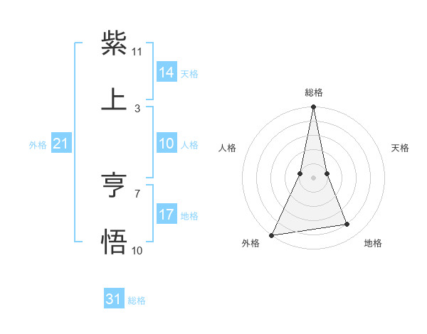 紫上 亨悟さんの総格は31画の5点!