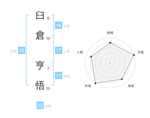 臼倉 亨悟さんを姓名の画数から五運を鑑定
