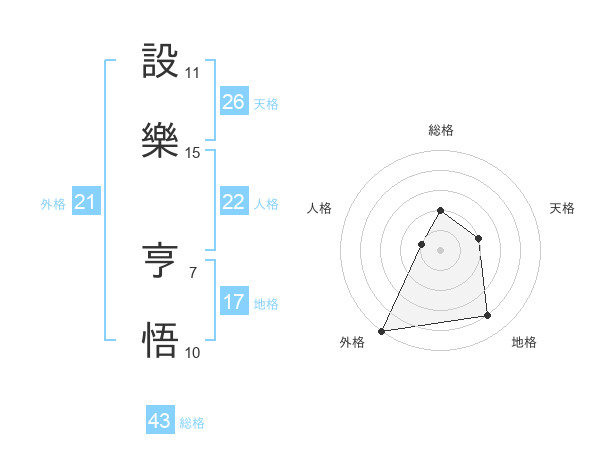 設樂 亨悟さんを姓名の画数から五運を鑑定