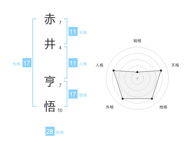 赤井 亨悟さんの外格は17画の4点!