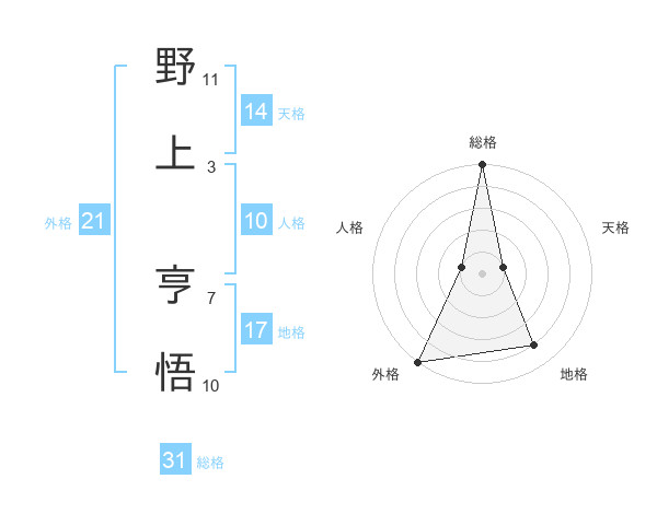 野上 亨悟さんの総格は31画の5点!