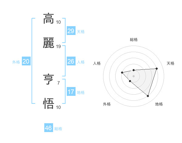 高麗 亨悟さんを姓名の画数から五運を鑑定