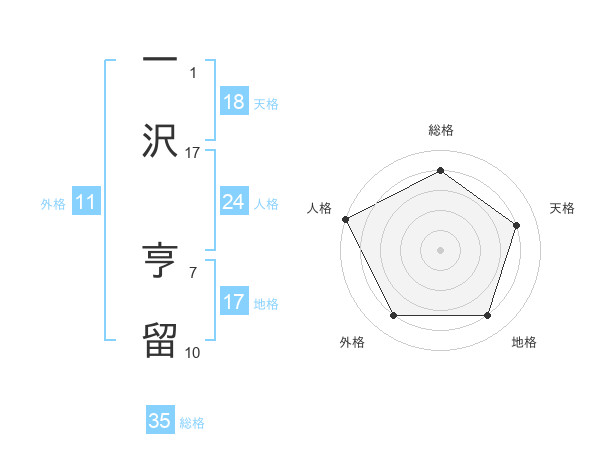 一沢 亨留さんを姓名の画数から五運を鑑定
