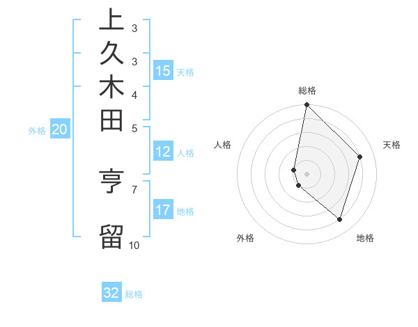 上久木田 亨留さんを姓名の画数から五運を鑑定