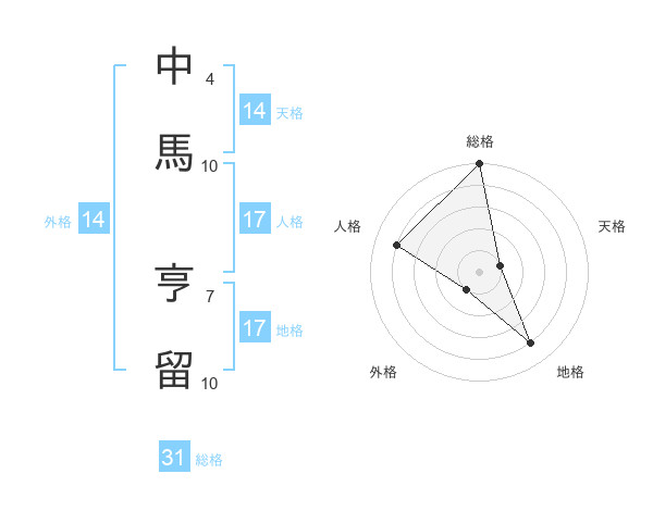 中馬 亨留さんを姓名の画数から五運を鑑定