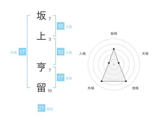 坂上 亨留さんを姓名の画数から五運を鑑定