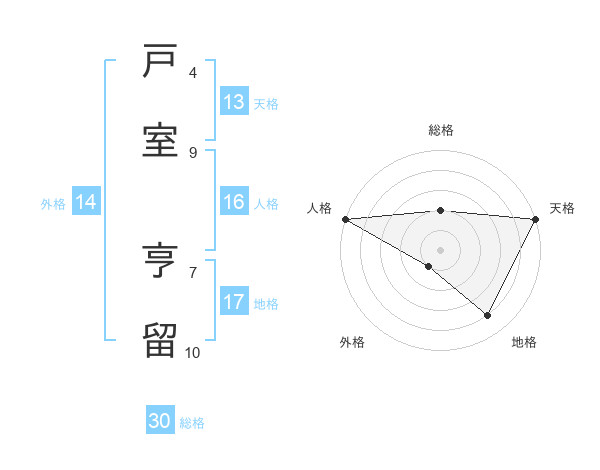 戸室 亨留さんを姓名の画数から五運を鑑定