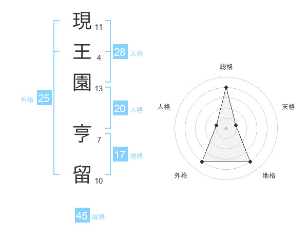 現王園 亨留さんを姓名の画数から五運を鑑定