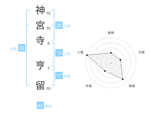 神宮寺 亨留さんを姓名の画数から五運を鑑定