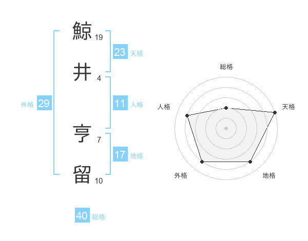 鯨井 亨留さんの天格は23画の5点!
