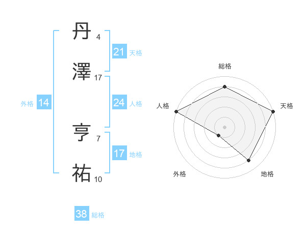 丹澤 亨祐さんを姓名の画数から五運を鑑定