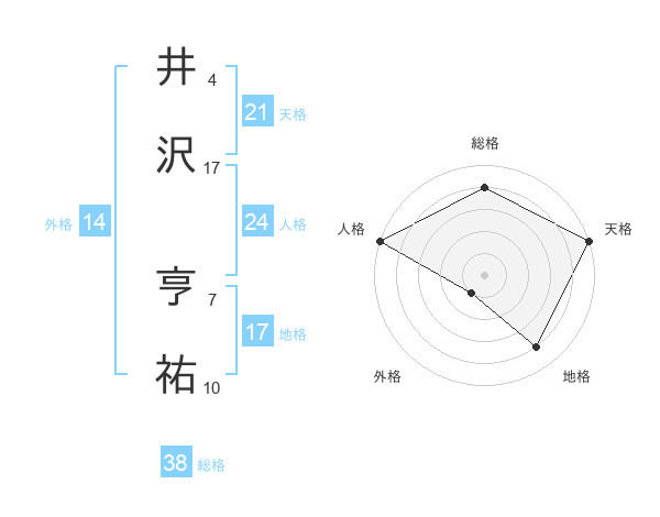 井沢 亨祐さんを姓名の画数から五運を鑑定