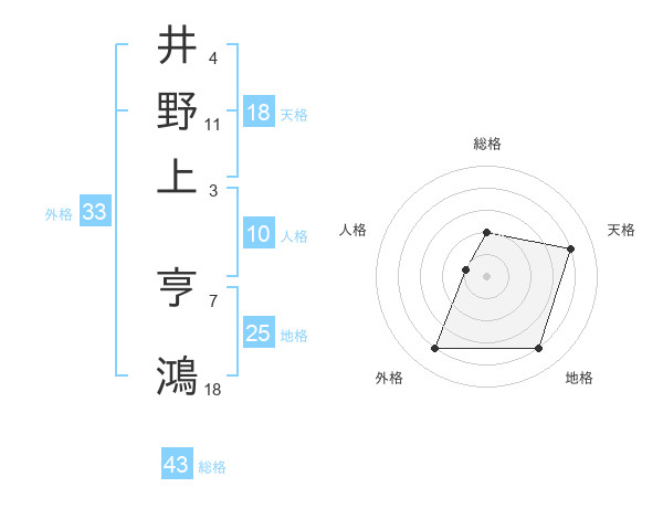 井野上 亨鴻さんを姓名の画数から五運を鑑定