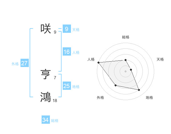 咲 亨鴻さんの総格は34画の2点!
